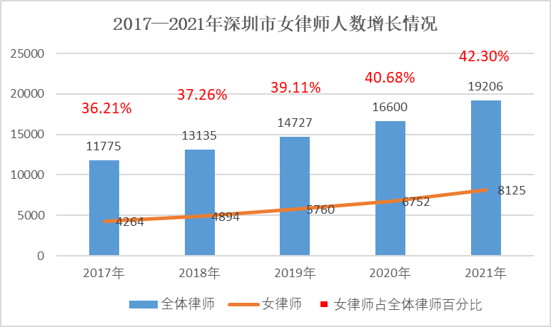 一、深圳女律師隊(duì)伍2017—2021年增長分析:深圳女律師占比超42%