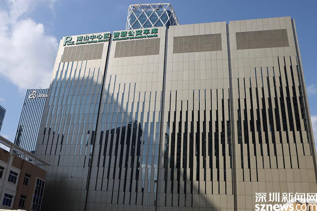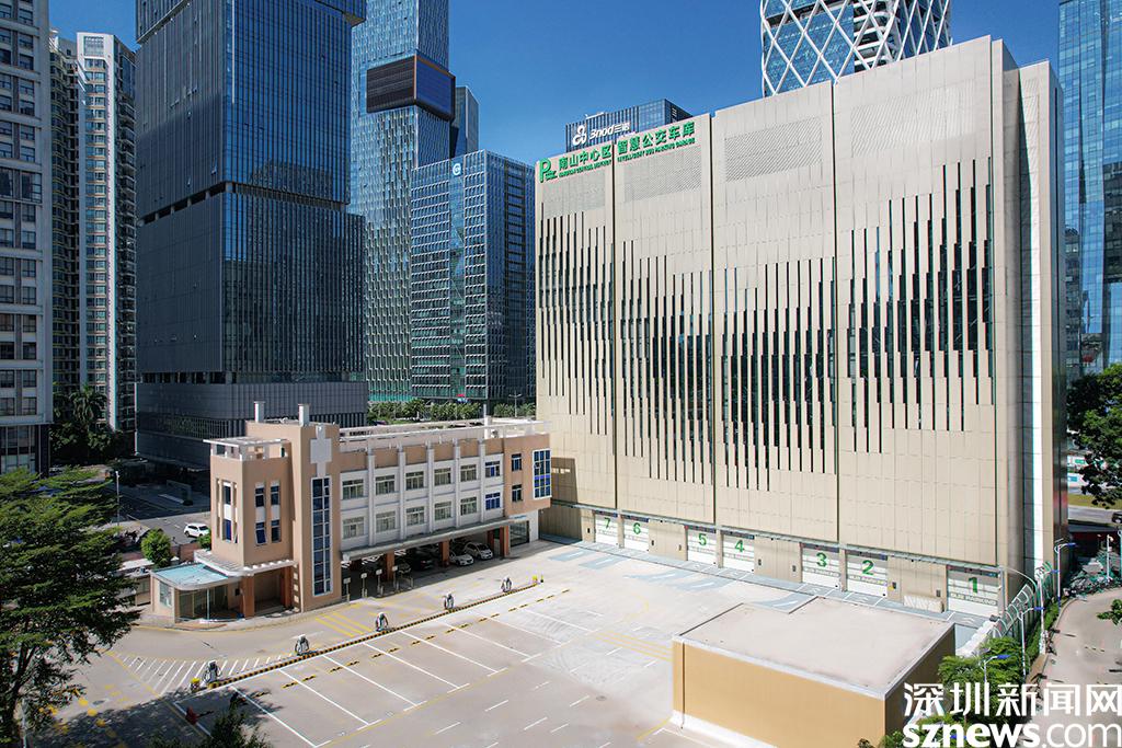 深圳南山中心區(qū)智慧立體公交車(chē)庫(kù)外觀。