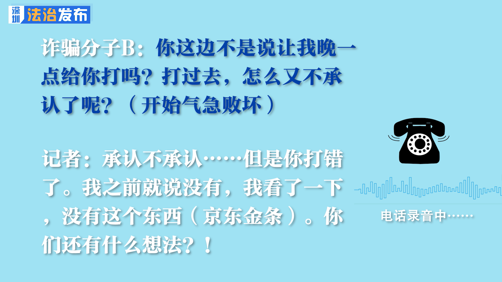 讀特客戶端深圳新聞網(wǎng)2022年11月23日訊(記者 張玲 翁任瑩)警惕金融詐騙新騙局!近日,各地陸續(xù)有報(bào)道詐騙分子冒充京東客服要求關(guān)閉白條、金條的新話術(shù),萬萬沒想到,詐騙分子11月22日就將電話打給了深圳新聞網(wǎng)法治新聞?dòng)浾?,接下來的事情發(fā)展,“畫風(fēng)”漸漸不對了。