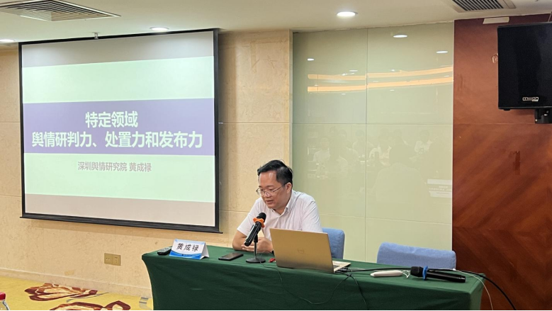 深圳新聞網(wǎng)2024年8月2日訊(記者 蔡雪曼 實習(xí)生 謝臻兒為提高全市特定領(lǐng)域人員輿情工作素養(yǎng),深化輿情意識和認(rèn)知,助力營造良好的輿論氛圍,7月25日下午,某市直單位舉辦專題培訓(xùn)班,邀請深圳輿情研究院執(zhí)行院長黃成祿擔(dān)任授課老師,圍繞《特定領(lǐng)域輿情研判力、處置力和發(fā)布力》主題展開授課。