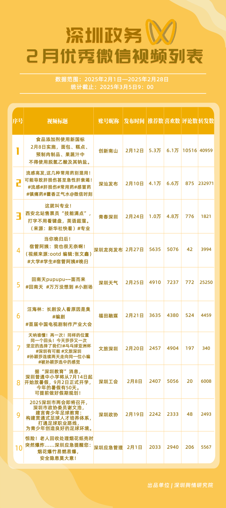 四、2月深圳優(yōu)秀政務(wù)新媒體賬號