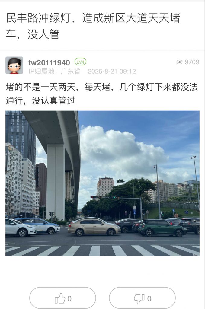 16. 帖文《民豐路沖綠燈,造成新區(qū)大道天天堵車(chē),沒(méi)人管》
