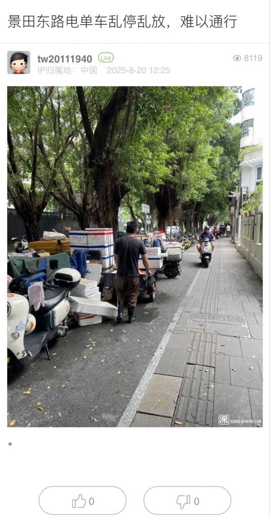12. 帖文《景田東路電單車(chē)亂停亂放,難以通行》