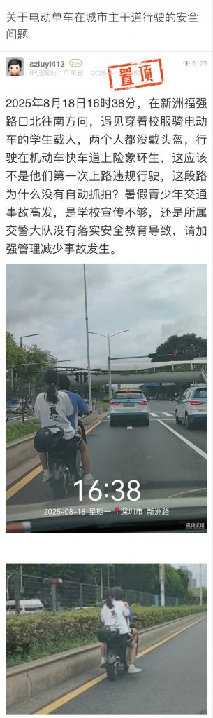 7. 帖文《關(guān)于電動(dòng)單車(chē)在城市主干道行駛的安全問(wèn)題》