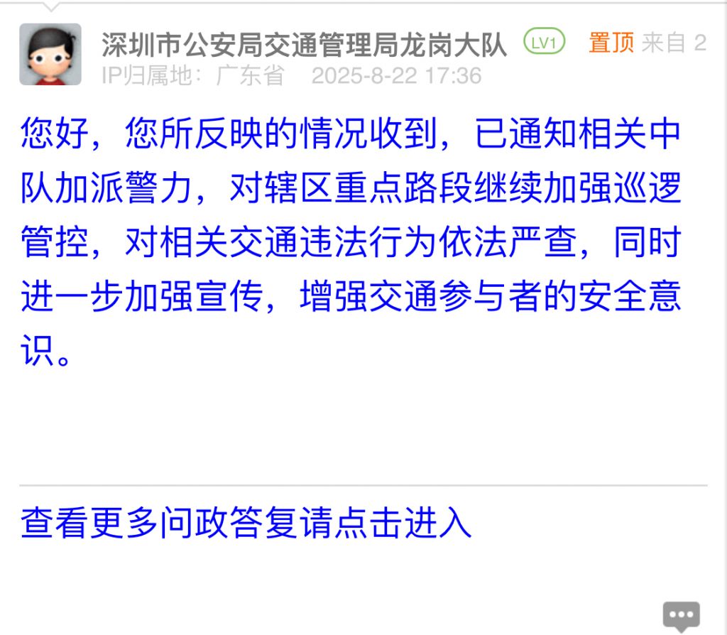 據(jù)統(tǒng)計(jì),2025年8月18日-2025年8月24日,網(wǎng)友在深圳論壇發(fā)布問(wèn)政類(lèi)帖文共40篇,得到相關(guān)單位正式回應(yīng)的帖文數(shù)為40篇,本期簡(jiǎn)報(bào)回應(yīng)速度最快的單位:市公安局交通管理局寶安大隊(duì)、市公安局交通管理局羅湖大隊(duì)、羅湖區(qū)翠竹街道辦事處、市生態(tài)環(huán)境局寶安管理局、龍崗區(qū)城市管理和綜合執(zhí)法局。