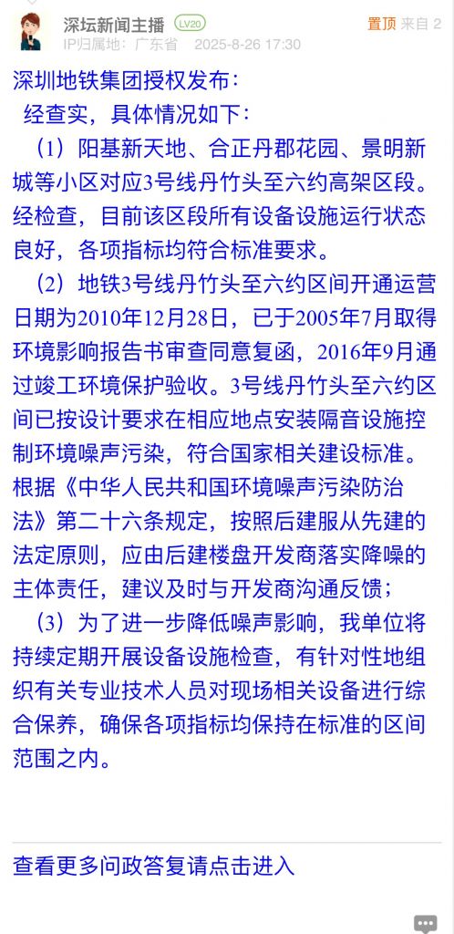33. 帖文《關(guān)于優(yōu)化深圳地鐵3號(hào)線(xiàn)龍崗丹竹頭段噪音問(wèn)題的建議》