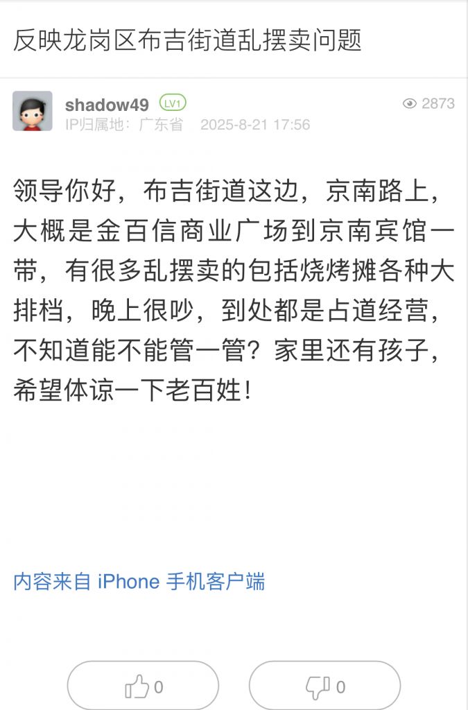 22. 帖文《反映龍崗區(qū)布吉街道亂擺賣(mài)問(wèn)題》
