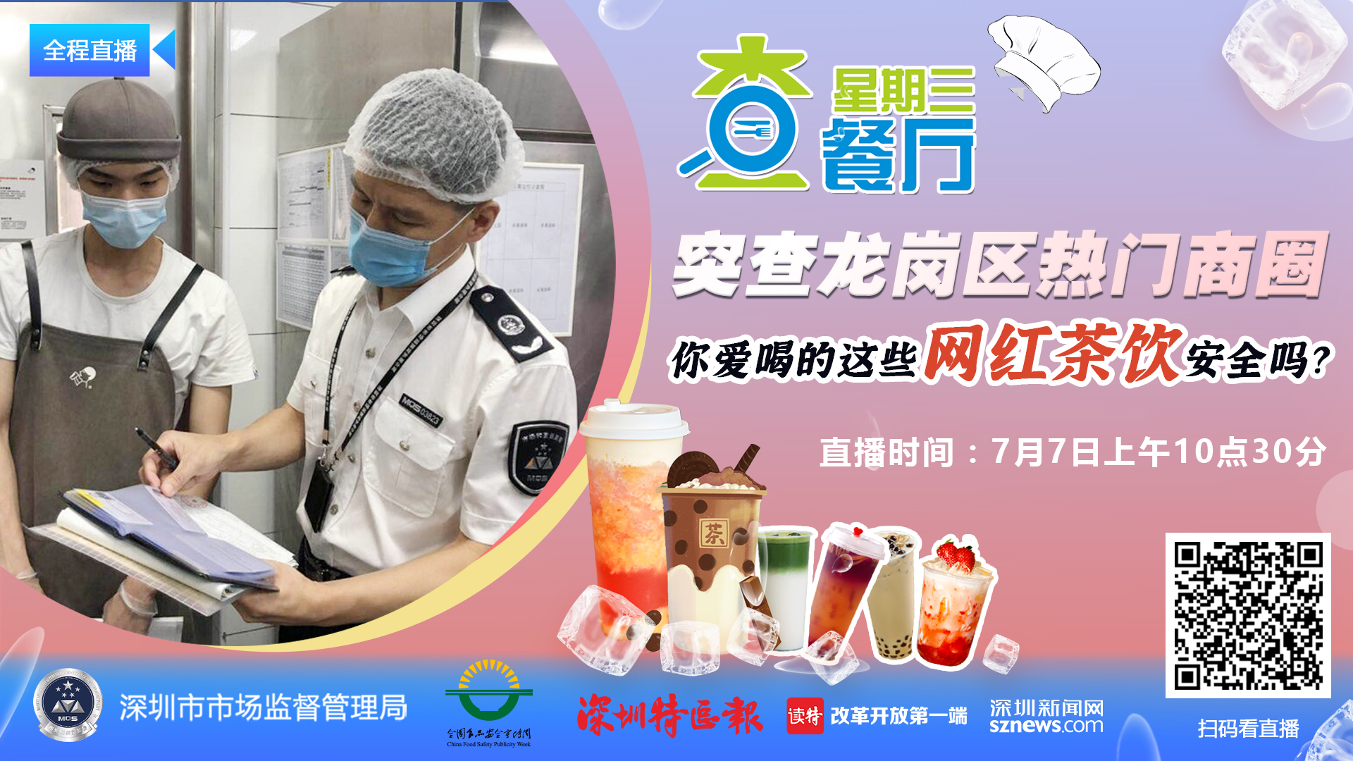 “星期三查餐廳,讓深圳人吃的更放心”。8月2日,有媒體曝光“奈雪的茶”存在食品安全隱患,在社會(huì)上引起廣泛關(guān)注,同時(shí)正值濕米粉中毒事故高發(fā)期,為回應(yīng)民生熱點(diǎn),科普食安知識(shí),8月4日,“星期三查餐廳”專項(xiàng)執(zhí)法行動(dòng)突擊檢查位于鹽田區(qū)大梅沙的“奈雪的茶”飲品店和經(jīng)營(yíng)濕粉類餐飲店--海月居海鮮餐廳。